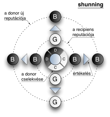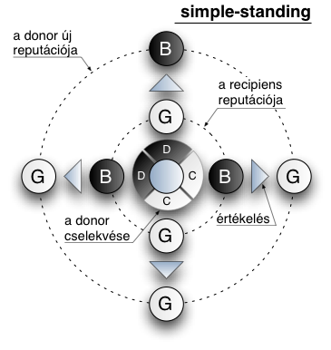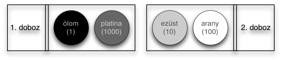 | döntési alternatívák: | $A$ | $A \to B$ | $ B$ |